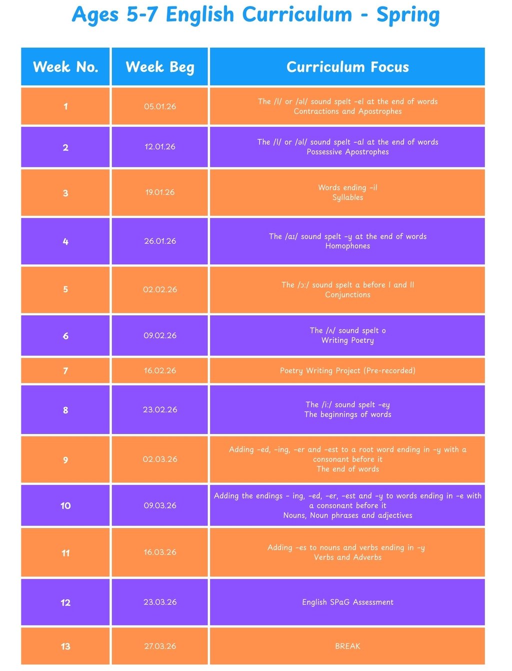 This Term's Curriculum Overview